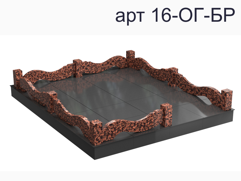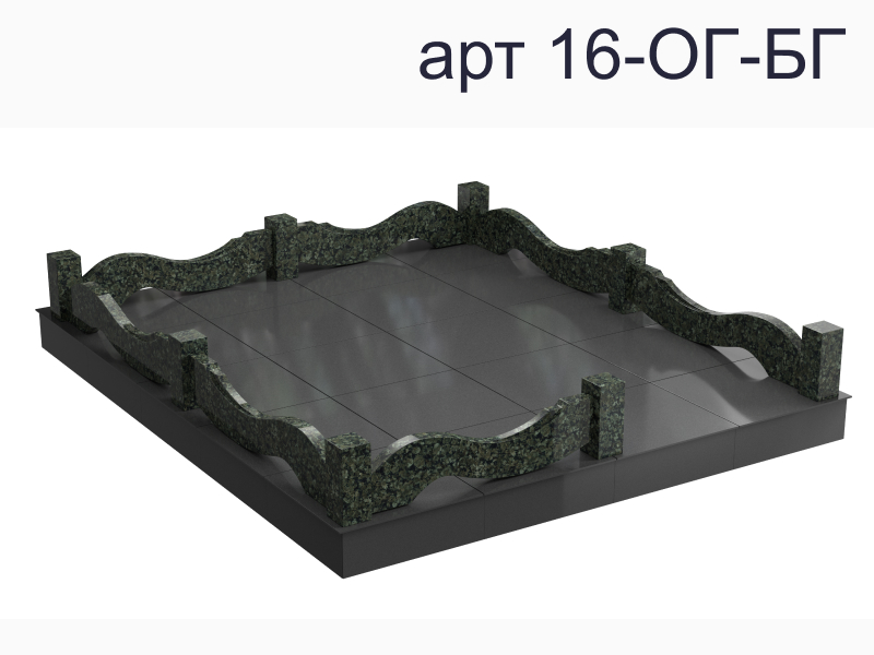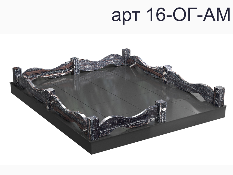 Фигурная ограда может быть выполнена из различных пород гранита и мрамора. Стоимость указана за ограду на участок 2*2,3. Она может изменяться в зависимости от породы камня и размеров изделия.
