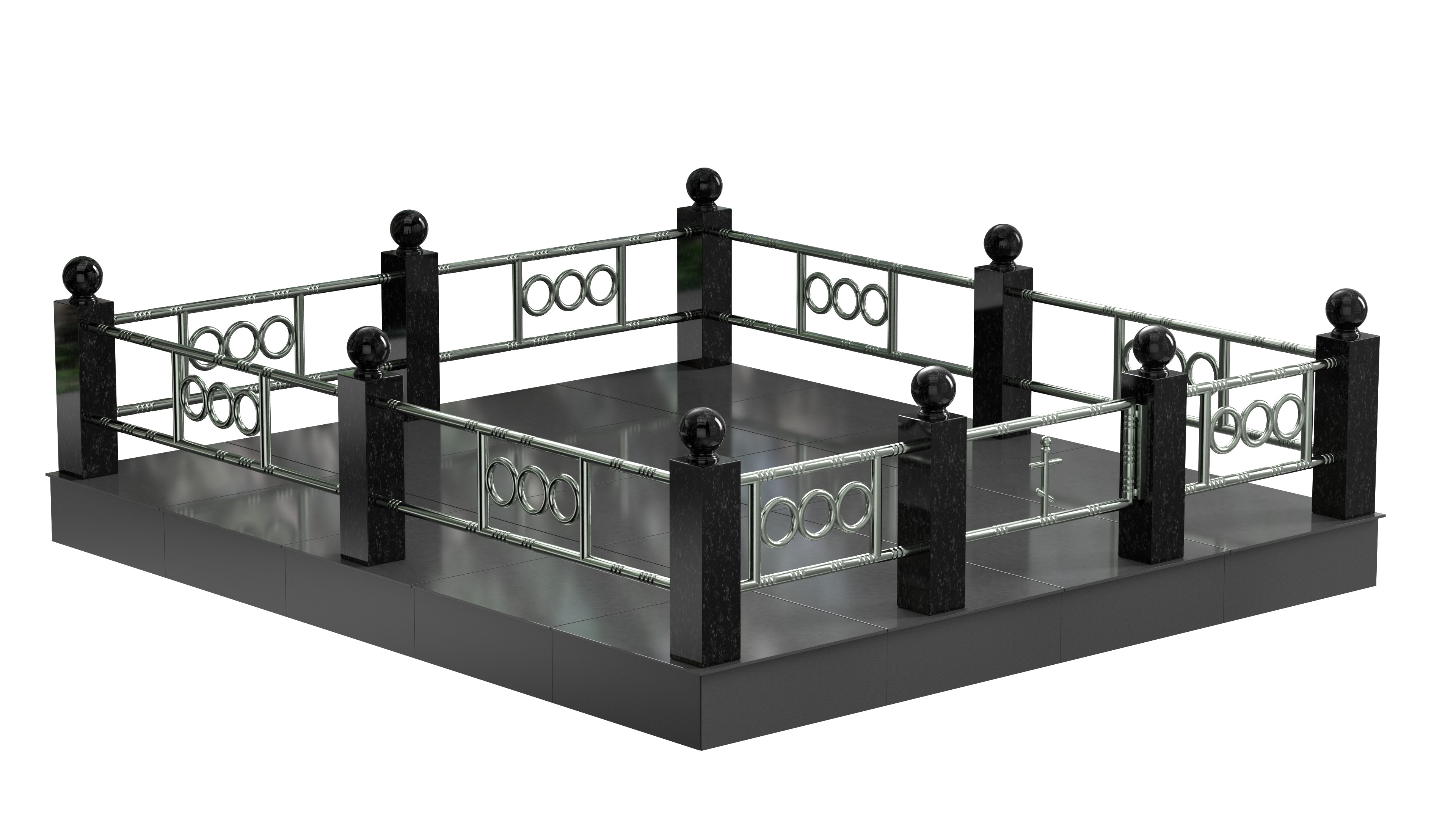 Ограда на могилу, изготовленная из качественной нержавеющей стали и гранита.