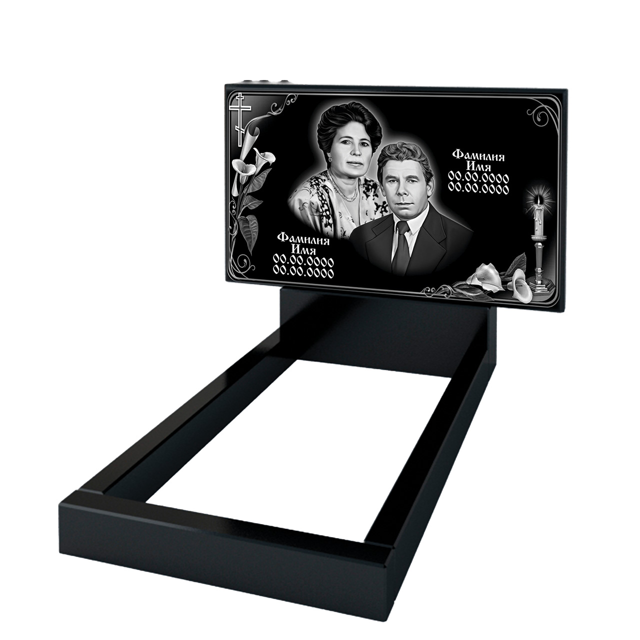 Памятник из габбро-диабаза с горизонтальной стелой — семейный комплект