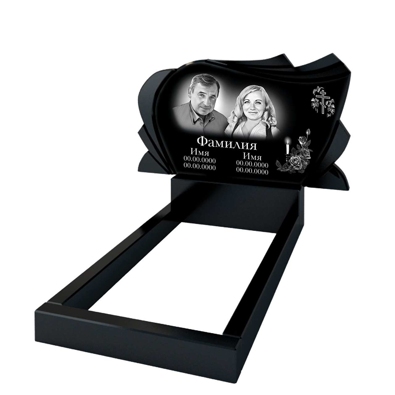 Памятник из габбро-диабаза с горизонтальной стелой — семейный комплект