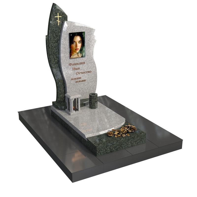 Памятник «Ветры памяти» — это современная модель с мягкой архитектурной формой и природным звучанием. Выполненный из гранита Куру Грей и Балтик Грин, он гармонично сочетает светлую фактуру и глубокую текстуру, символизируя течение жизни и единство с природой. Волнообразная стела из светлого серого гранита Куру Грей придаёт памятнику лёгкость, а зелёный гранит Балтик Грин добавляет природную глубину и покой.