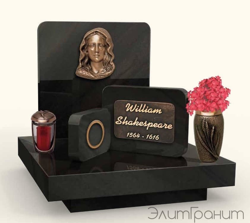 Заказать вертикальный памятник из гранита в Минске модели А-19. В комплект включены стела, цветник, тумба.