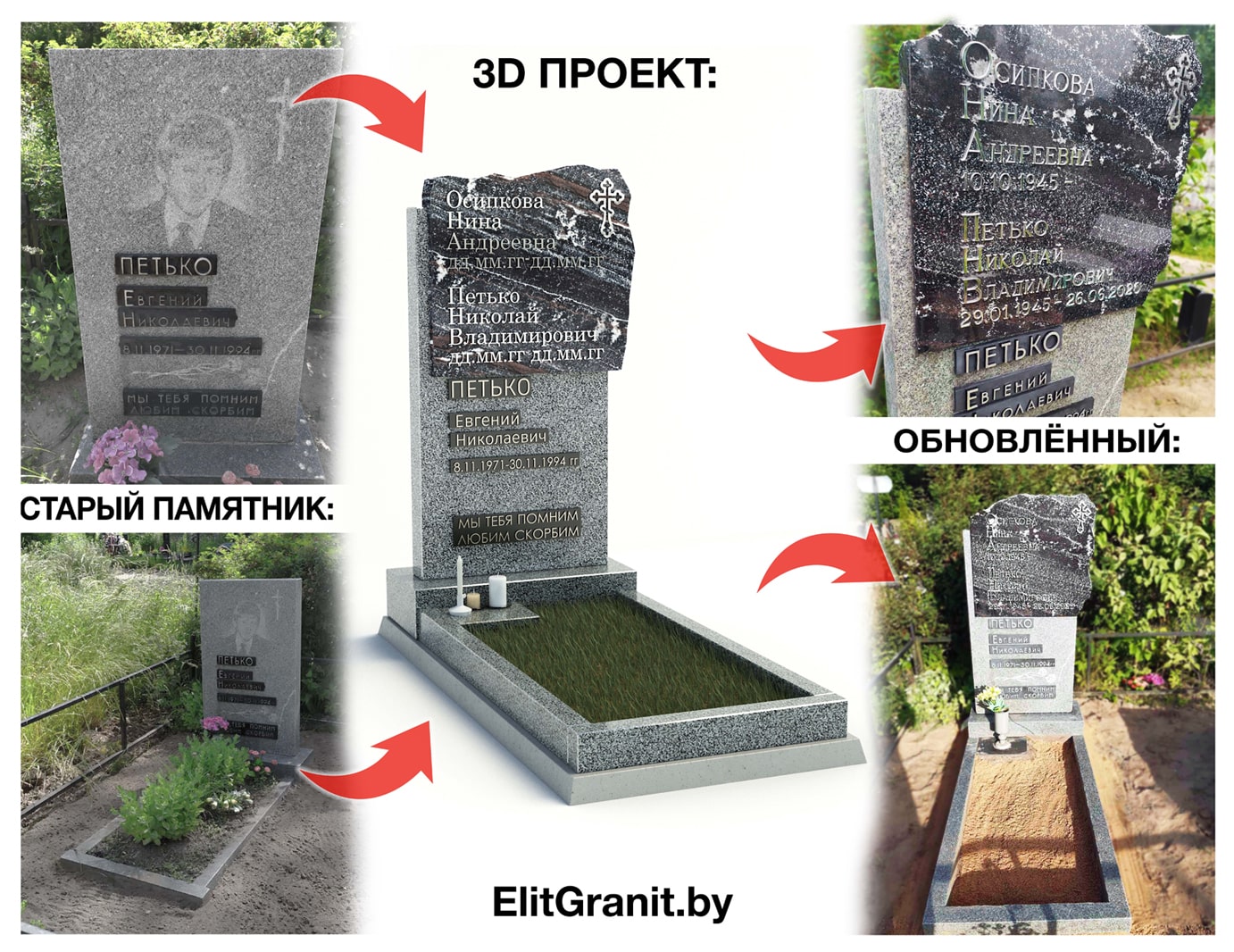 Обращайтесь в компанию «ЭлитГранит» – приедем на кладбище и отреставрируем участок, памятник, благоустроим место захоронения.