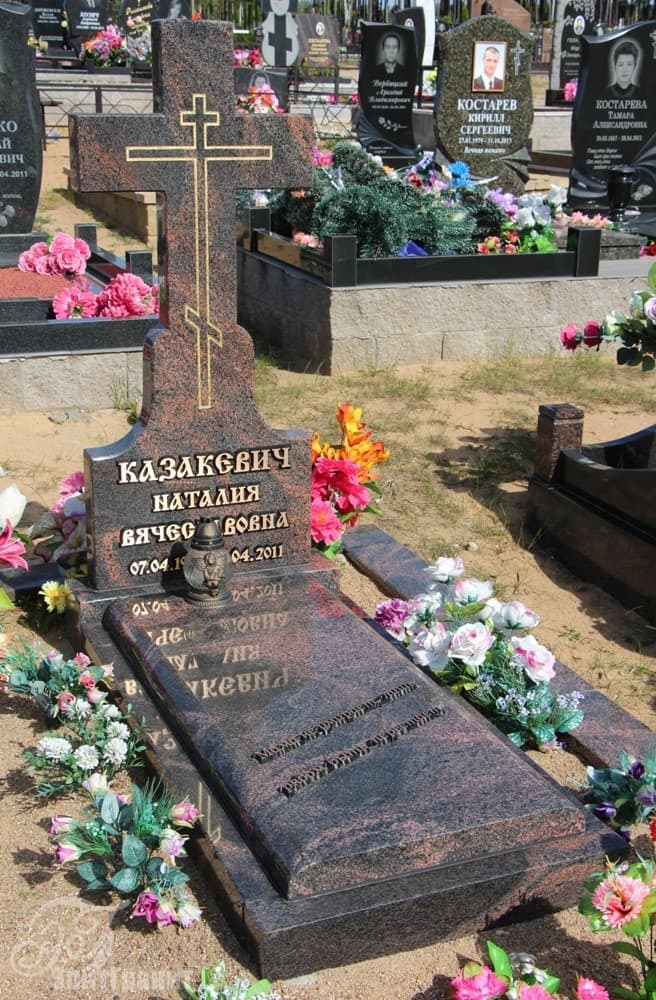 Во-вторых, форма памятника в виде креста достаточно практична: гранит является надежным и нетребовательным материалам, а значит долговечным — он не требует покраски и обновления художественного оформления (например, гравировку), более того она не выцветает и не выгорает с течением времени.