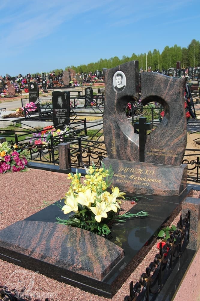 Памятники из гранита Aurora имеют особый строгий шарм: спокойная элегантность и монументальная изысканность. Особенно интересно смотрятся памятники из финского гранита Аврора в нестандартных формах: неровность очертаний памятника входит в диалог с текстурой камня, создавая интересные решения, которые невозможны при использовании другого вида гранита.