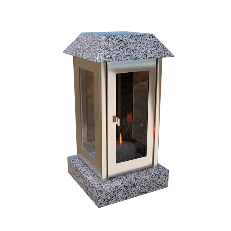 Стильная и надёжная лампада для памятника, выполненная из натурального гранита с декоративной вставкой цвета серебро. Основа и крышка из гранита могут быть изготовлены из камня более чем с 20 различных месторождений — от классического чёрного до эксклюзивных цветных гранитов.